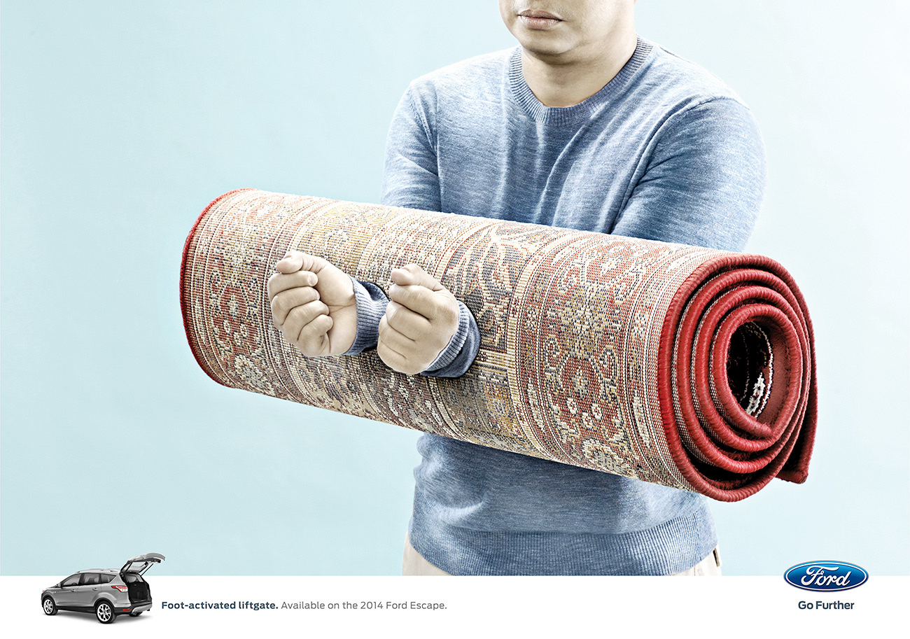 One of the coolest things about working on automotive brands is the sheer amount of innovation you can talk about. Each feature is a single-minded brief. Here's an idea for Ford that shows why having a Foot-activated Liftgate is, well, handy.